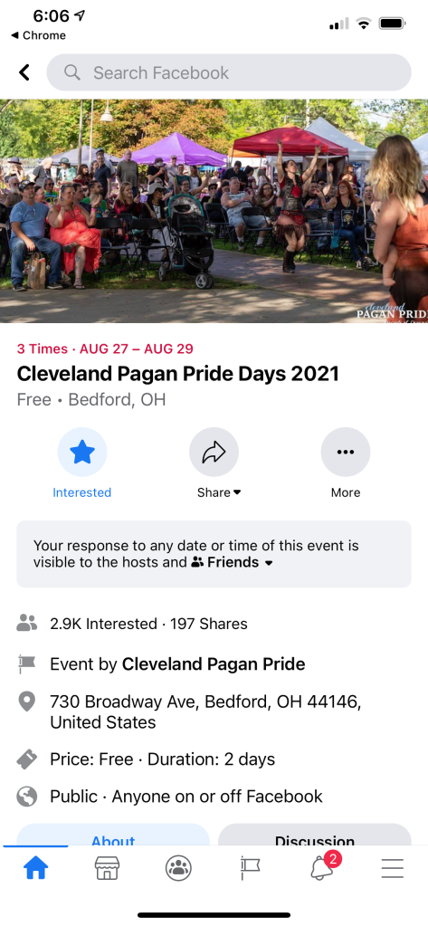 We discussed Pagan Pride Days. It will be in late August in Bedford Ohio. It sounds like an interesting festival.