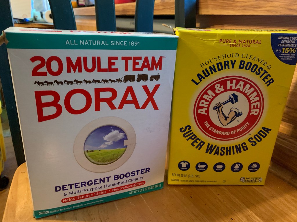 I just made my first pass at making laundry detergent. I hunted “recipes” on line for quite a while and found one that I ended up kind of liking (okay, several because they are all pretty much alike).